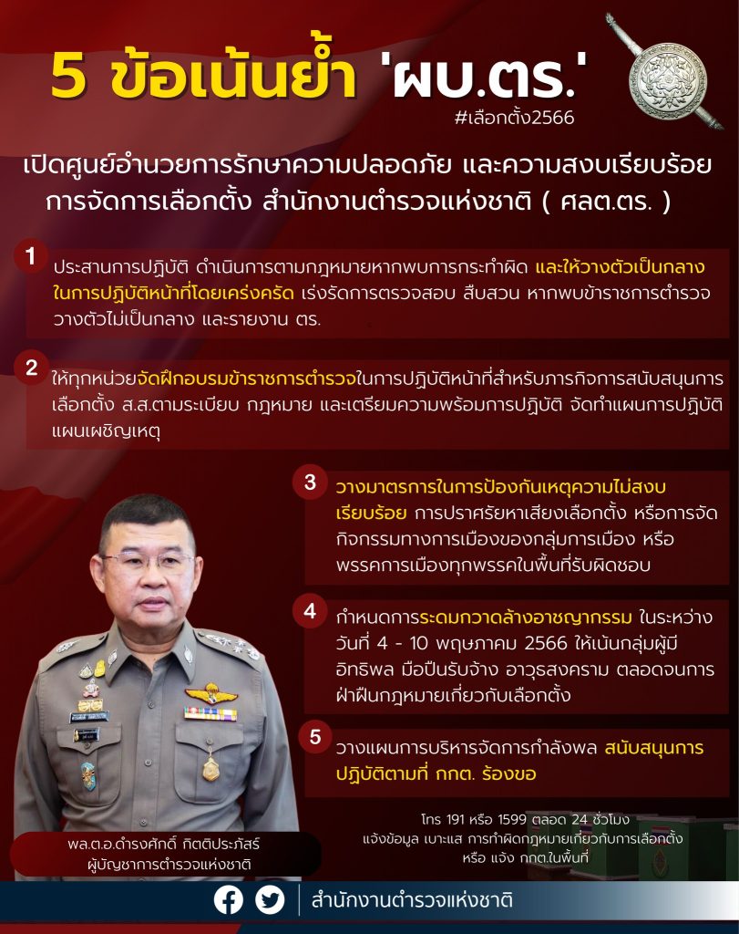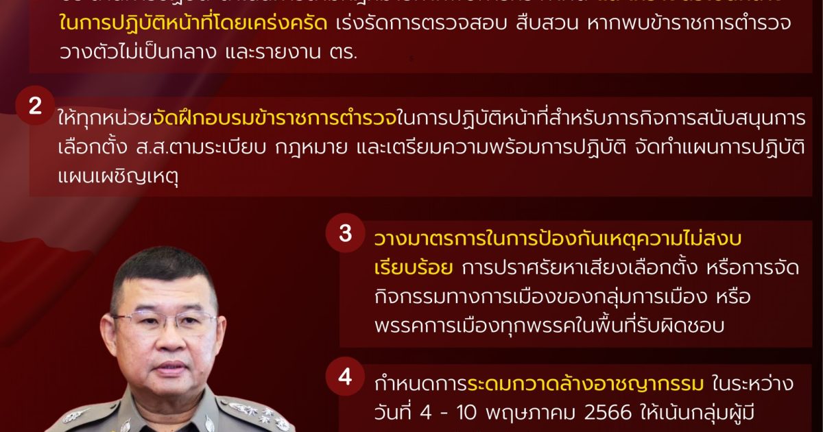 5 ข้อเน้นย้ำ จาก “ผบ.ตร.” ในภารกิจดูแลความสงบเรียบร้อยการเลือกตั้ง ส.ส.2566