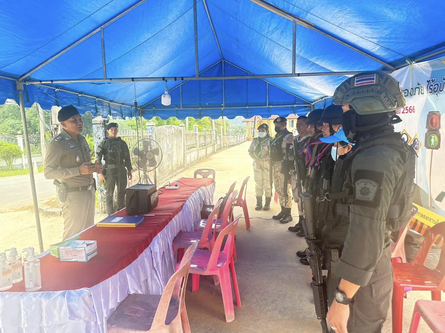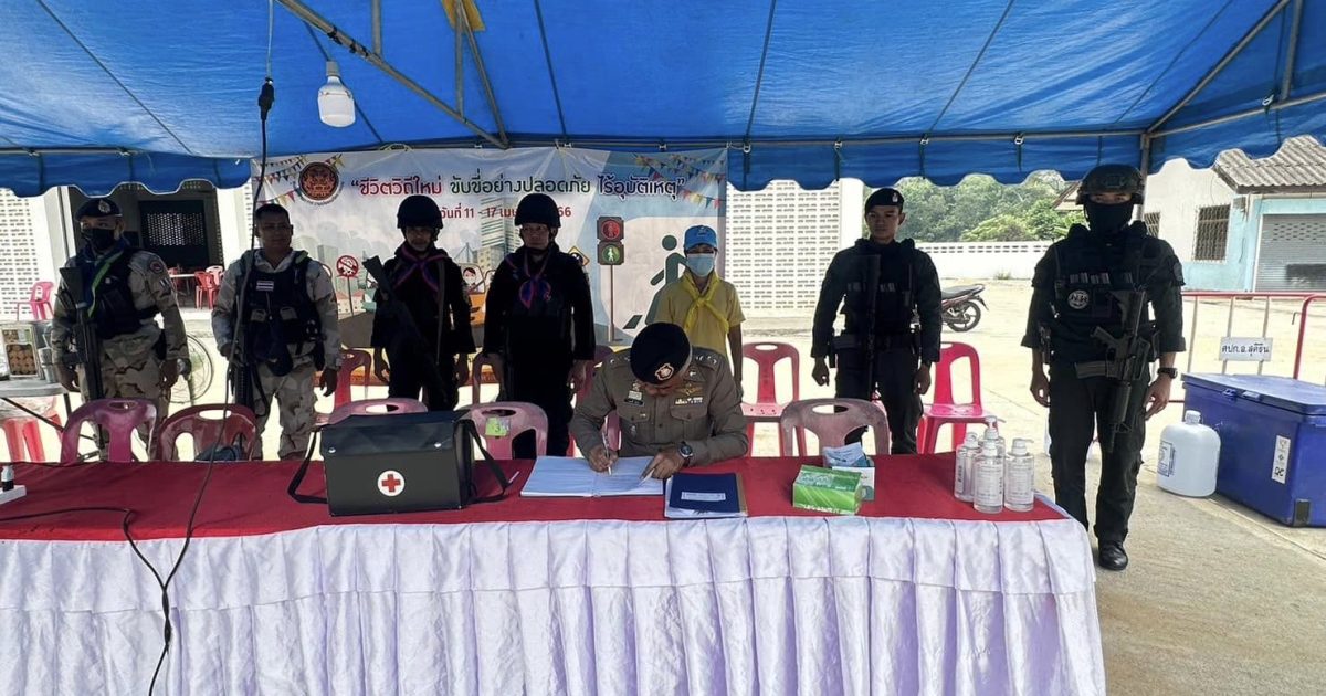 มอบหมายให้ พ.ต.อ.วฤทธิ์ เจ๊ะโด ผกก.สภ.สุคิรินออกตรวจเยี่ยมโครงการ “ชีวิตวิถีใหม่ ขับขี่อย่างปลอดภัย ไร้อุบัติเหตุ” ในช่วงเทศกาลสงกรานต์ เพื่อให้บริการประชาชนที่เดินทางในช่วงเทศกาล พร้อมทั้งกวดขันวินัยจราจรและการป้องกันเหตุเมาแล้วขับซึ่งอาจก่อให้เกิดอุบัติเหตุได้ ในห่วงเวลาตั้งแต่วันที่ ๑๑-๑๗ เมษายน ๒๕๖๖ ณ ศูนย์ปฎิบัติการป้องกันและลดอุบัติเหตุบนท้องถนนช่วงเทศกาลสงกรานต์ พบเจ้าหน้าที่(ตำรวจ,ทหาร,ฝ่ายปกครอง) อยู่ปฎิบัติหน้าที่เรียบร้อย รายงานเหตุการณ์ทั่วไปปกติ