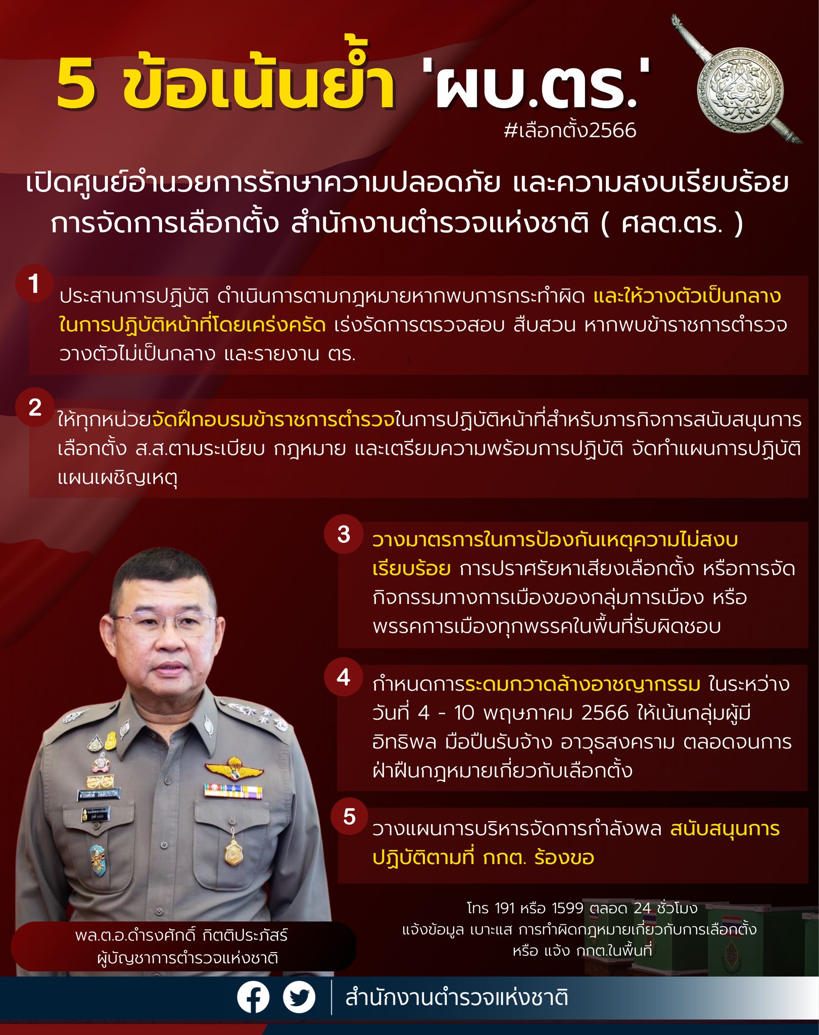 5 ข้อเน้นย้ำ จาก “ผบ.ตร.” ในภารกิจดูแลความสงบเรียบร้อยการเลือกตั้ง ส.ส.2566 . ในการเปิด